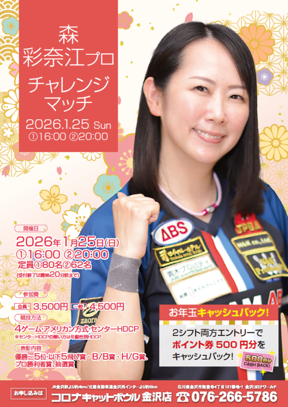 > 森 彩奈江プロチャレンジマッチ 2026/1/25 @16:00〜/A20:00〜