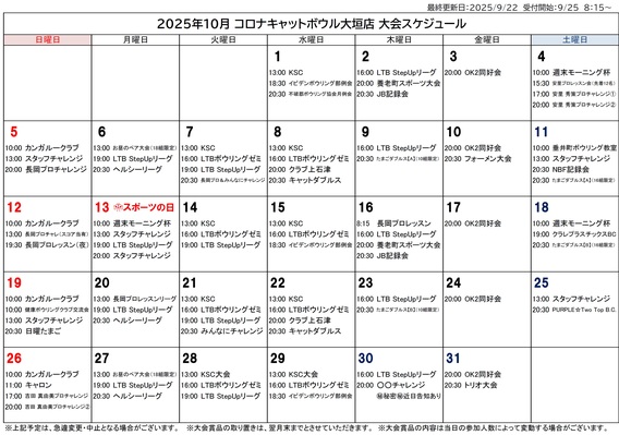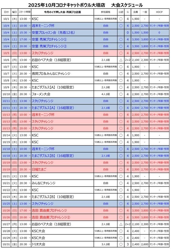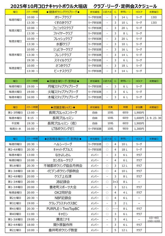 下記予定は諸事情により予告無く変更・中止する場合がございます。