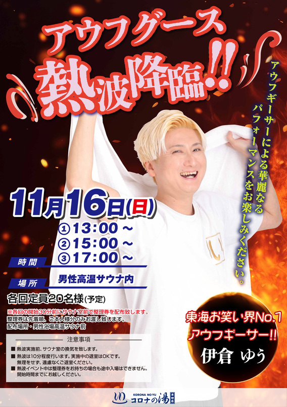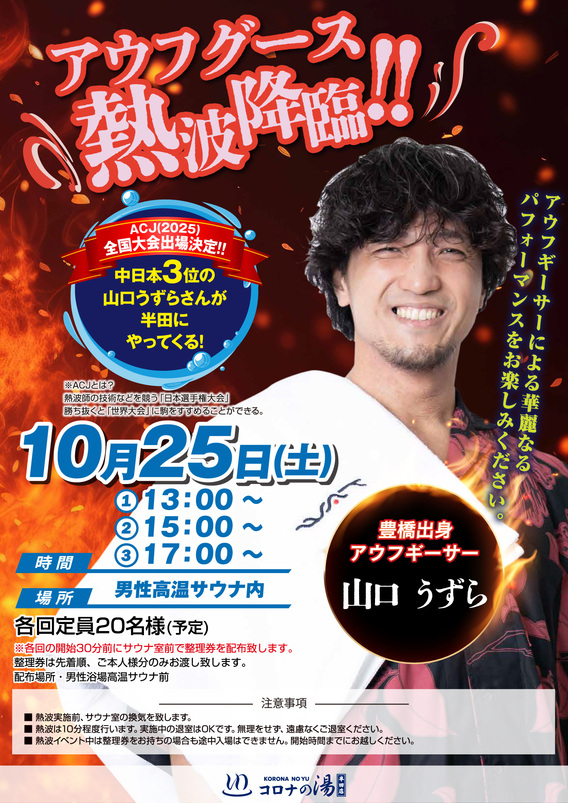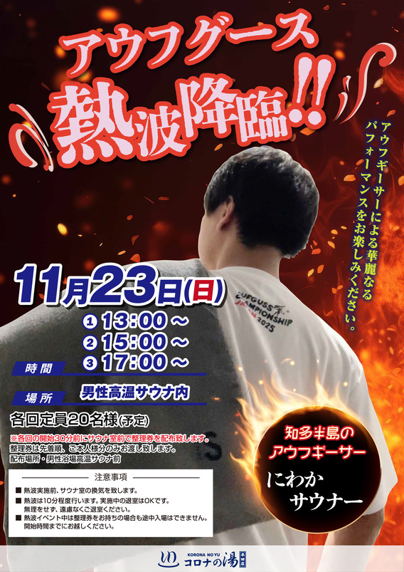 コロナの湯半田店では「アロマロウリュ」というコロナの湯オリジナルの「ロウリュ」サービスを高温サウナ内にて実施中!!