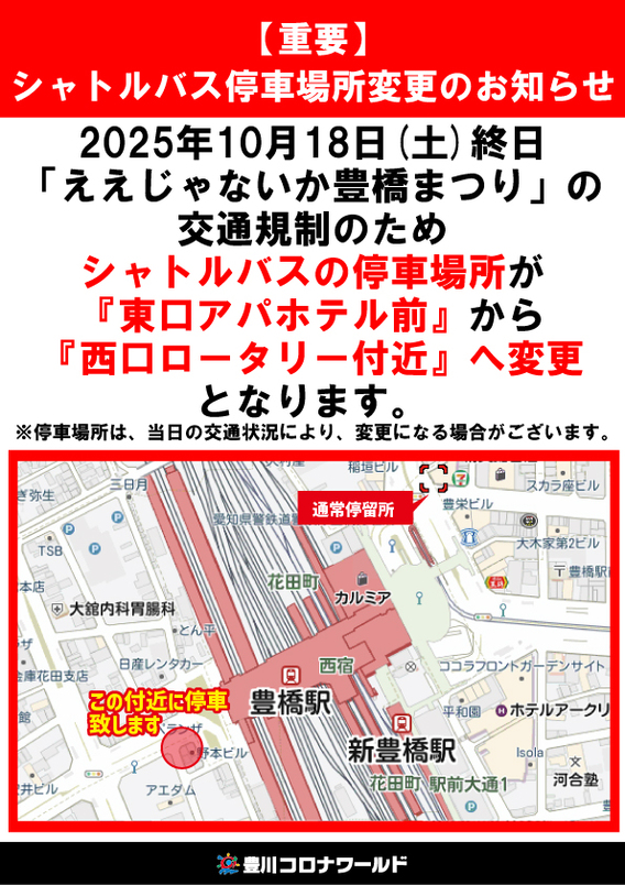 ■無料シャトルバスは豊川コロナワールドをご利用のお客様専用バスです。