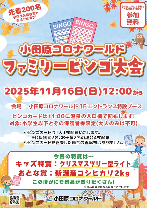 【先着200名無料イベント】11/16ファミリービンゴ大会