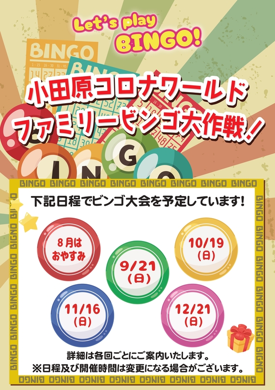 > 【先着200名無料イベント】11/16ファミリービンゴ大会
