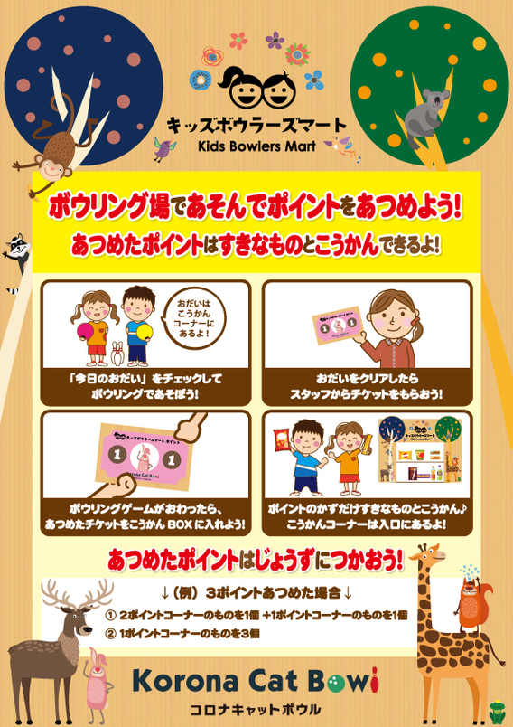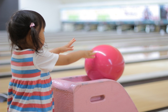 ボールを投げるのが難しいお子様には、投球補助台をご用意しています。ボールをのせて滑らせるだけで簡単にボウリングが楽しめます。