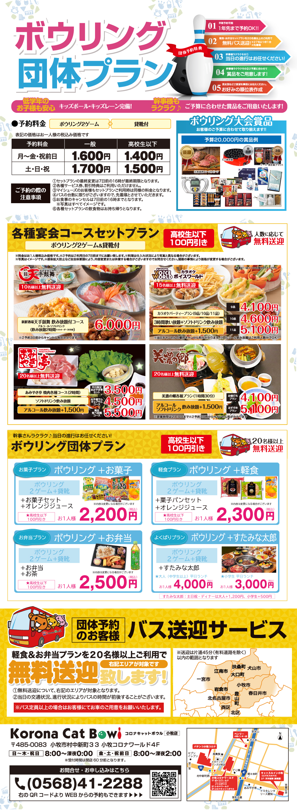 ※【お菓子・軽食・お弁当セット】はお持ち帰りのみ対応させていただき、ボウリング店内でのご飲食はお断りさせて頂いております。