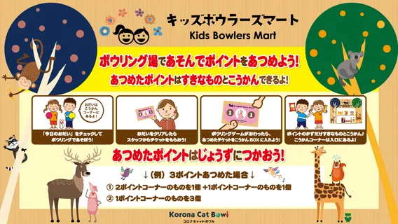 お題をクリアするとポイントカードが貰えて、集めたポイントはお帰りの際に好きなものと交換できます。ぜひ挑戦してみてください!