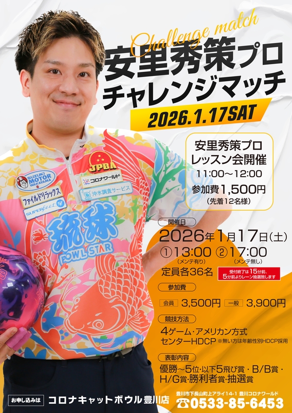 スムーズな大会進行の為、投球は1レーンけん制でお願いします。