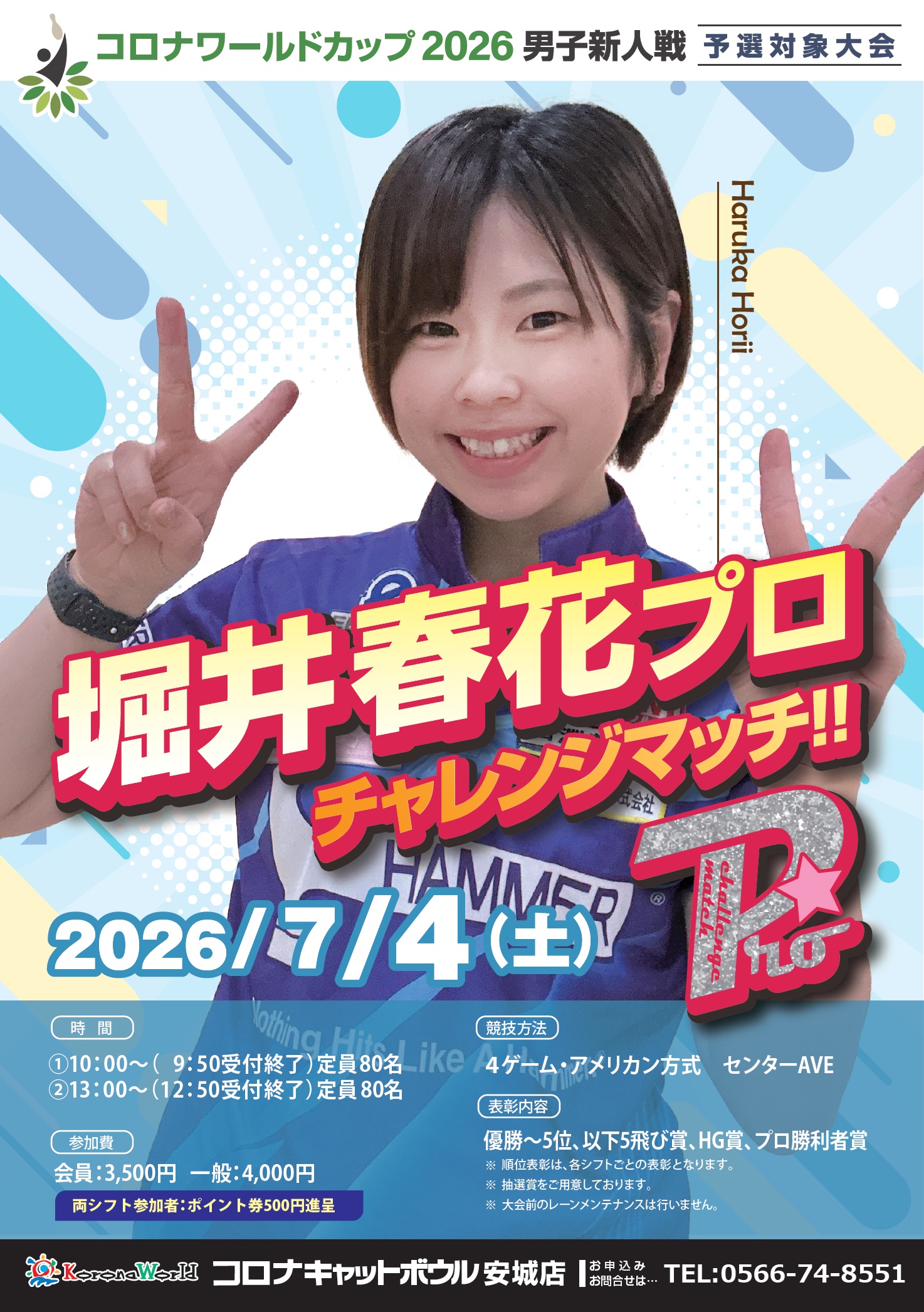 | 大会名 | 堀井春花プロチャレンジマッチ コロナワールドカップ2026 男子新人戦 予選対象大会 |