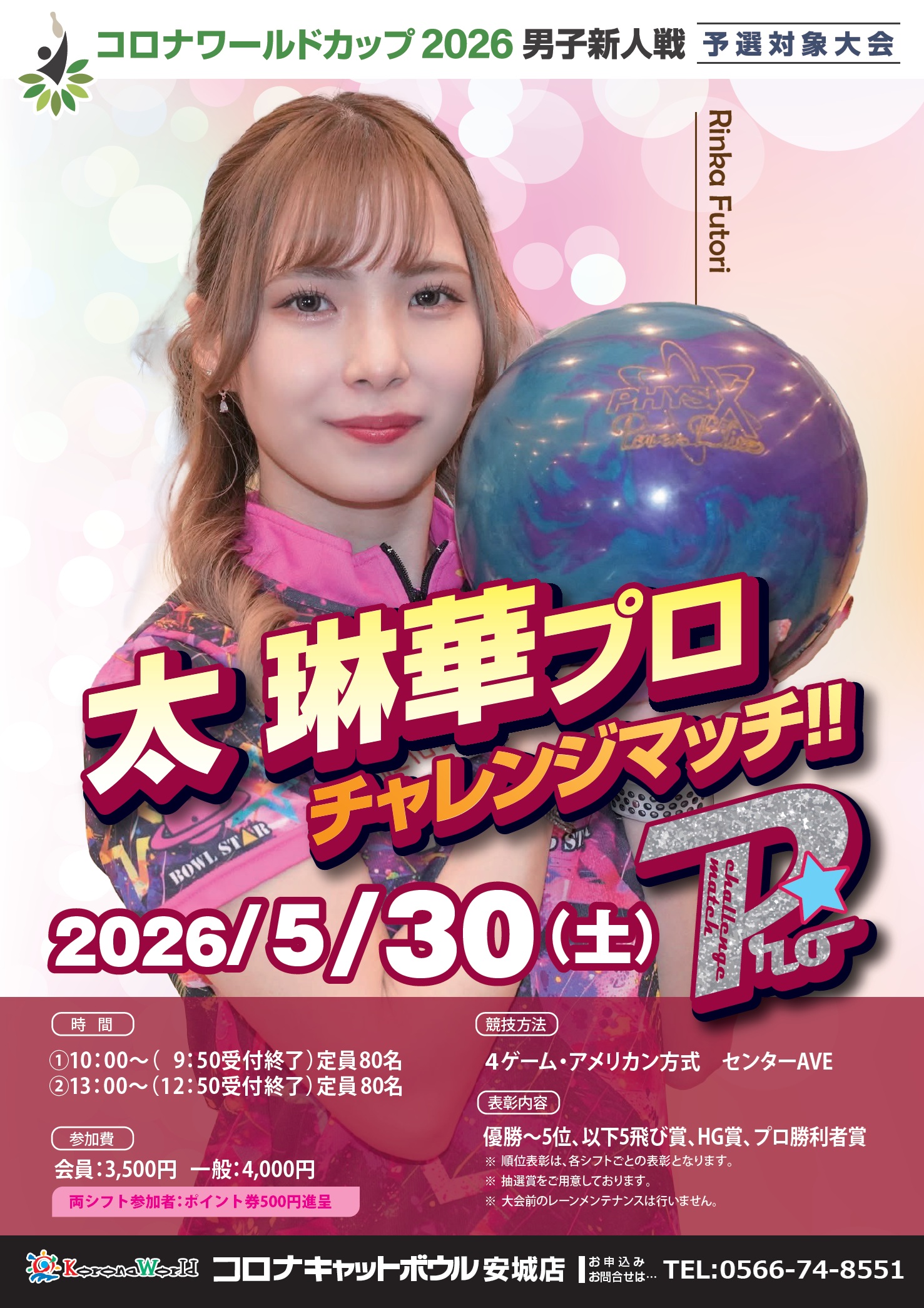 | 大会名 | 太琳華プロチャレンジマッチ コロナワールドカップ2026 男子新人戦 予選対象大会 |