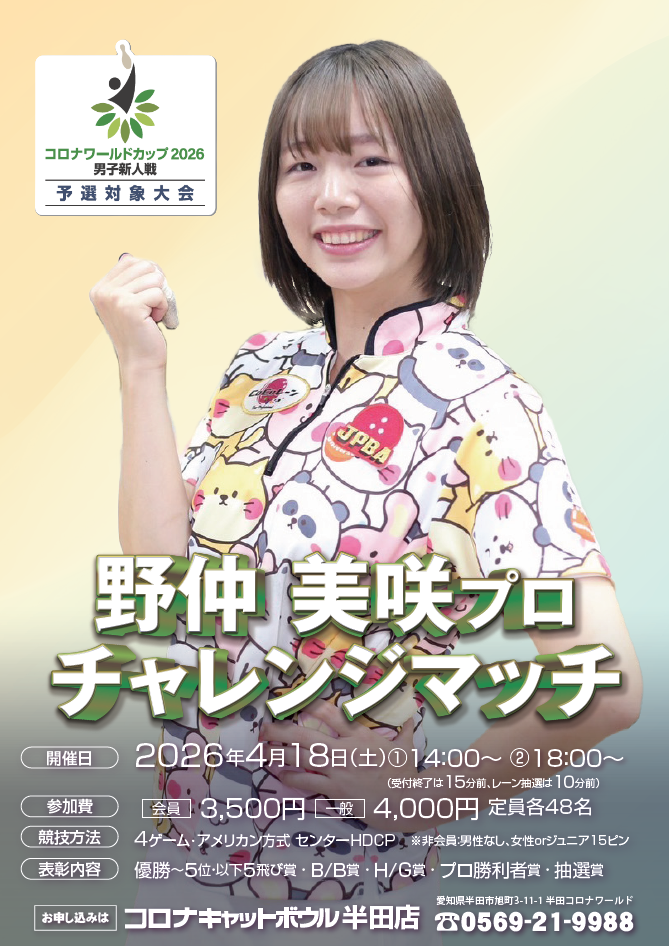 | 参加プロボウラー | 野仲美咲プロ |