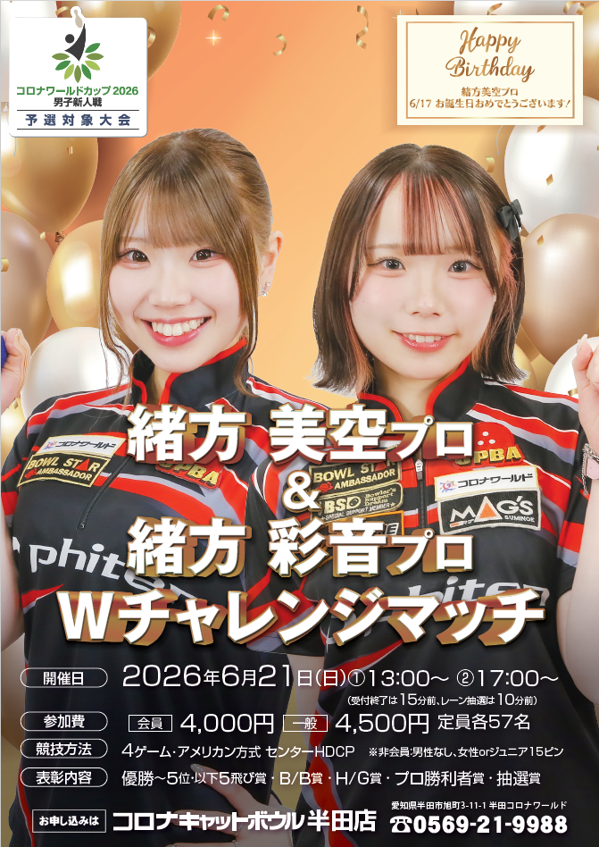 | 参加プロボウラー | 緒方美空プロ 緒方彩音プロ |