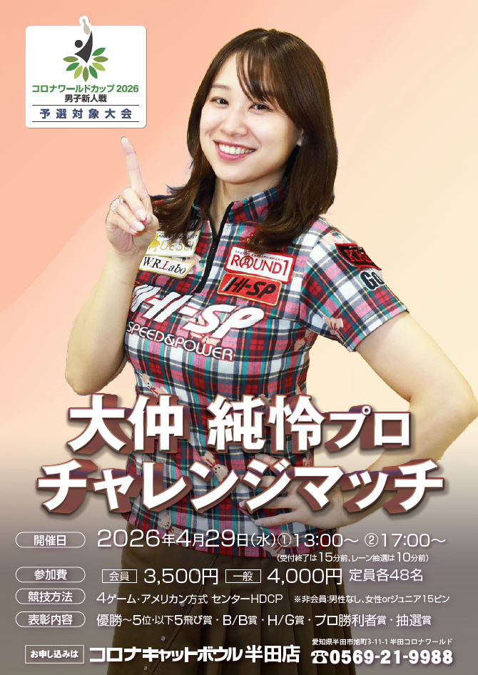 | 参加プロボウラー | 大仲純怜プロ |