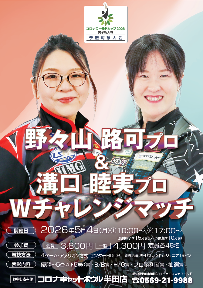 | 参加プロボウラー | 野々山路可プロ 溝口睦実プロ |