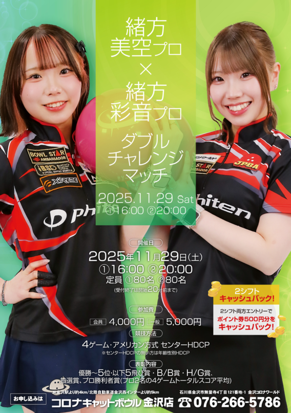 緒方美空プロ&緒方彩音プロチャレンジマッチ 2025/11/29 ①16:00~/②20:00~