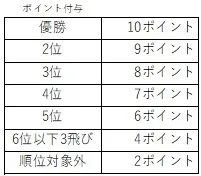 ①順位ポイント制…最終開催日ポイント順位にて表彰
