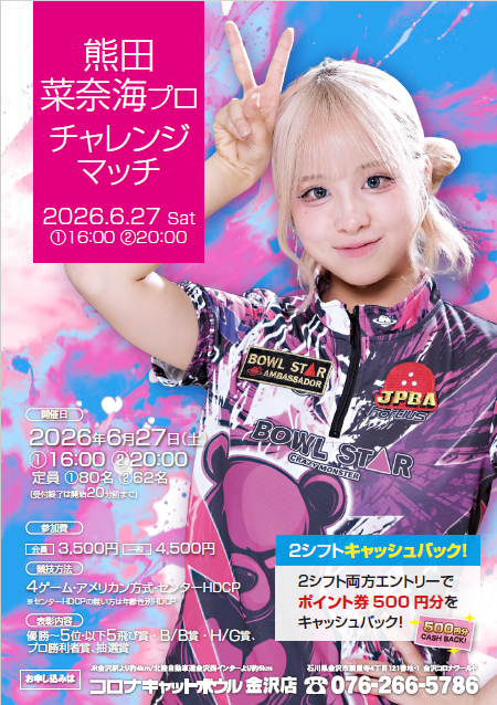 | 参加プロボウラー | 熊田菜奈海プロ |