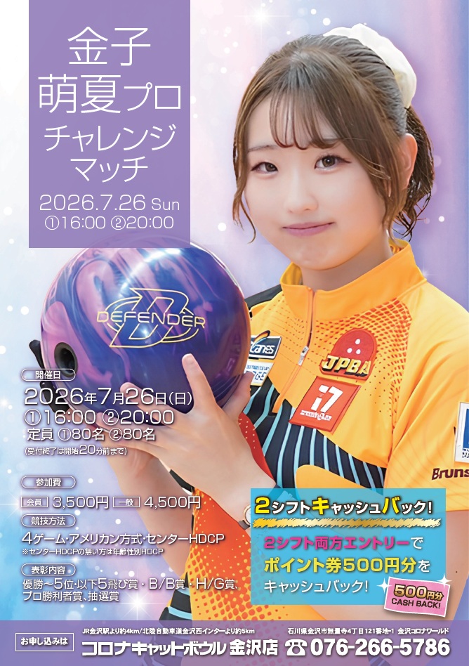 | 参加プロボウラー | 金子萌夏プロ |