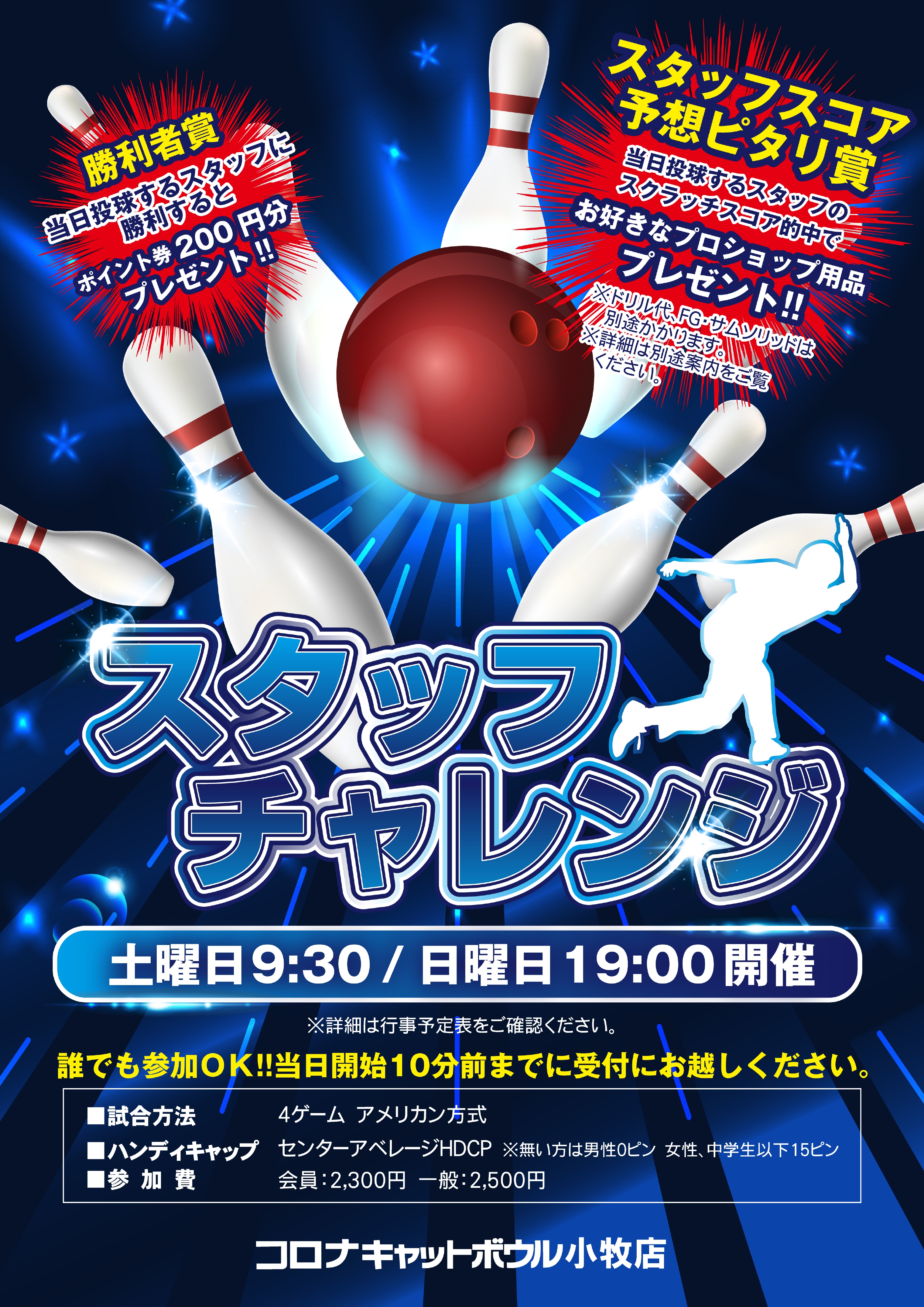 | ハンディキャップ | センターアベレージHDCP (ない方:男性HDCP0ピン・女性/ジュニアHDCP15ピン) |