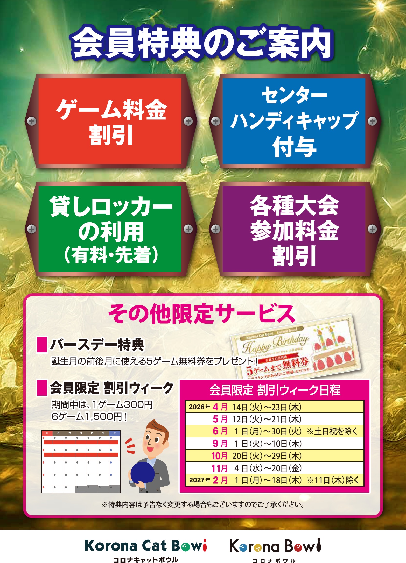 コロナキャットボウル会員・ コロナボウル会員特典のご案内