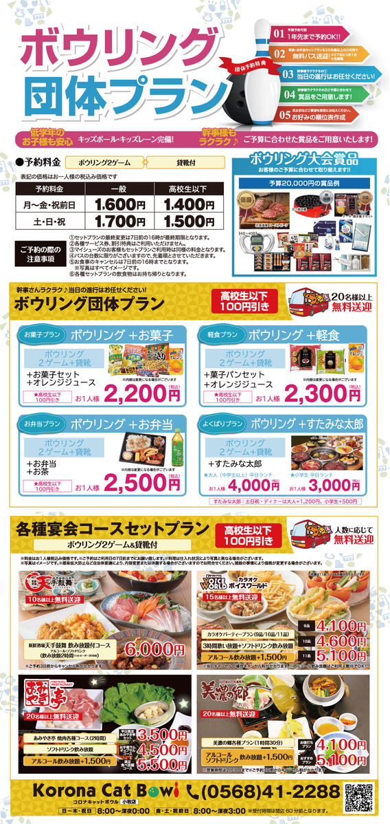 ※【お菓子・軽食・お弁当セット】はお持ち帰りのみ対応させていただき、ボウリング店内でのご飲食はお断りさせて頂いております。