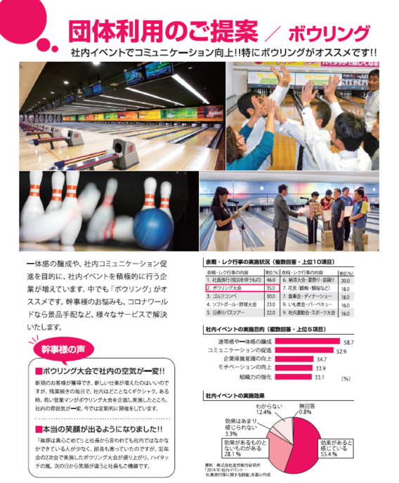 ボウリングは手軽に様々な用途でご利用いただけます。