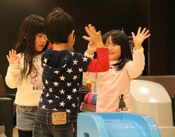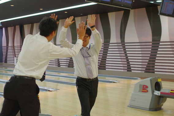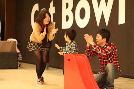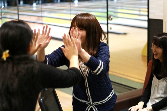 緊張もいつの間にかとけ、ストライクやスペアで自然とハイタッチ!