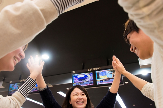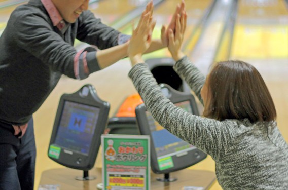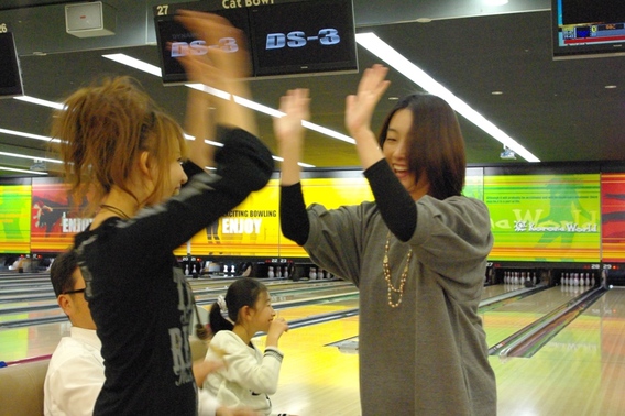 ストライク・スペアが取れた瞬間は最高の笑顔が♪ハイタッチで喜びを分かち合おう!