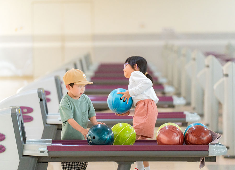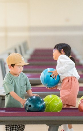 はじめてのボウリング体験は、ぜひコロナキャットボウルへ! 小さなお子様、ボウリングがはじめてのお子様でも心配いりません。お子様用ボールや投球補助台を利用し、大人と一緒になってゲームに参加することができます。