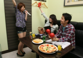 - カラオケで、