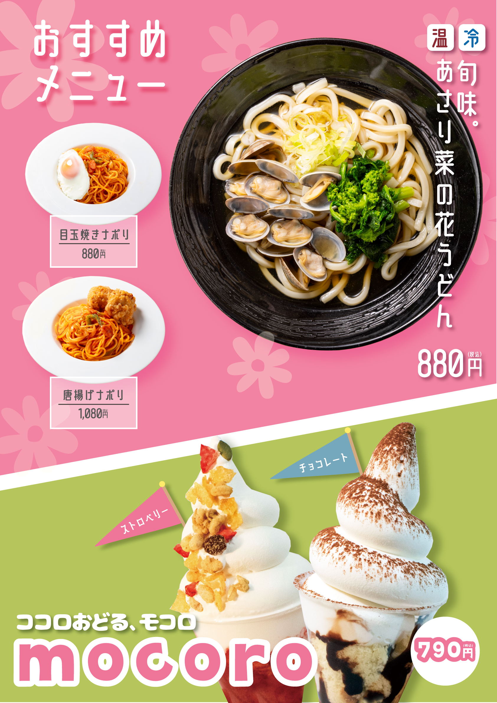 福山コロナワールド1Fのフードテラスです。ボリューム満点「二郎系らーめん」がイチオシ!!その他、ご当地「福山醤油ラーメン」「手延べ天ぷらうどん」や「天丼」「焼き豚丼」「フライドポテト」「ソフトクリーム」など、大人から子供まで楽しめるメニューが盛りだくさん!