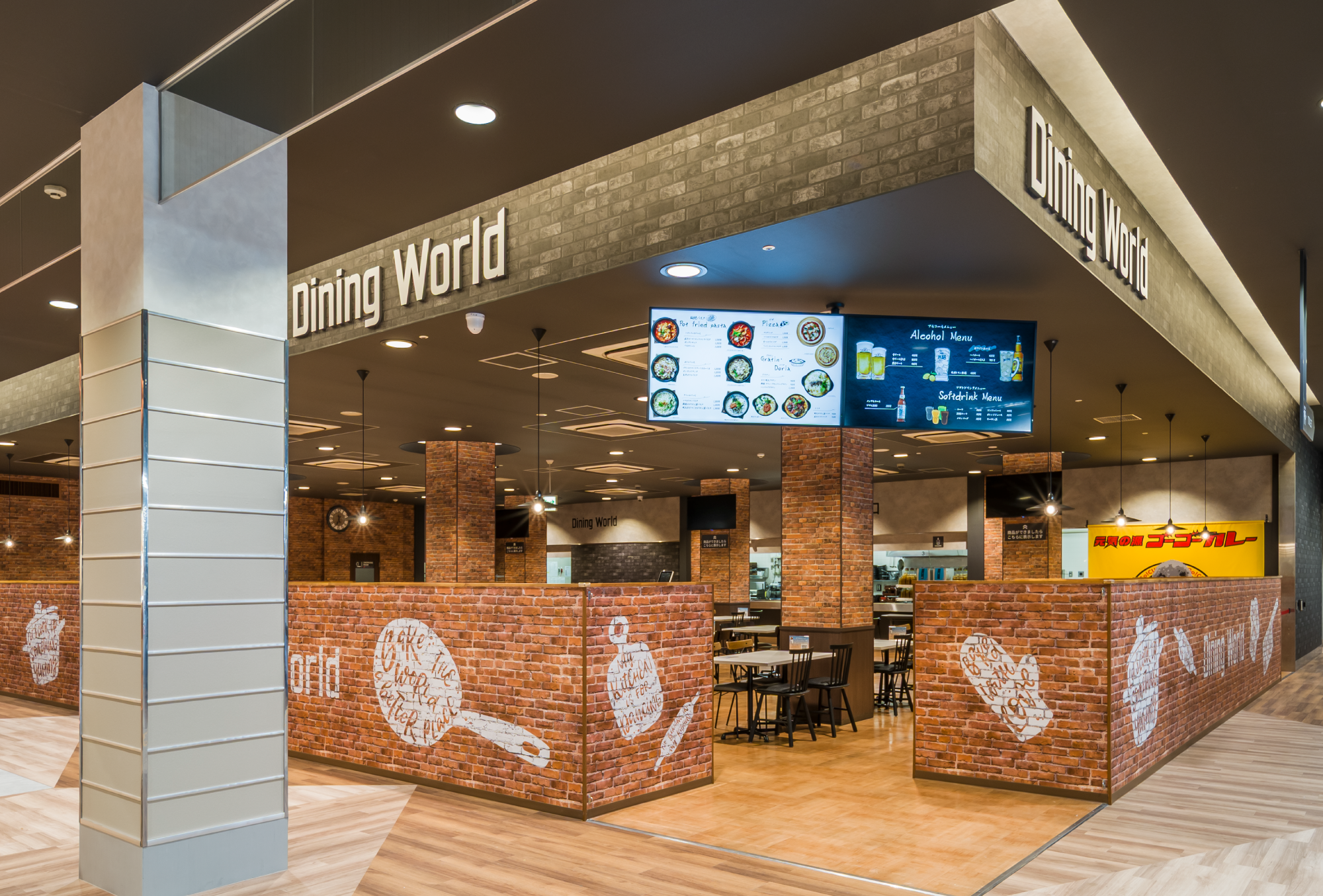 フードコート中川店は『ダイニングワールド 中川店』として生まれ変わりました。従来のフードコートスタイルから一歩進んだ、食事をゆっくりと楽しめるニューレストランスタイルへと進化。広々とした空間に洗練されたデザインを取り入れ、落ち着いた雰囲気の中で、家族や友人、カップルが心ゆくまで食事を満喫できるようになりました。