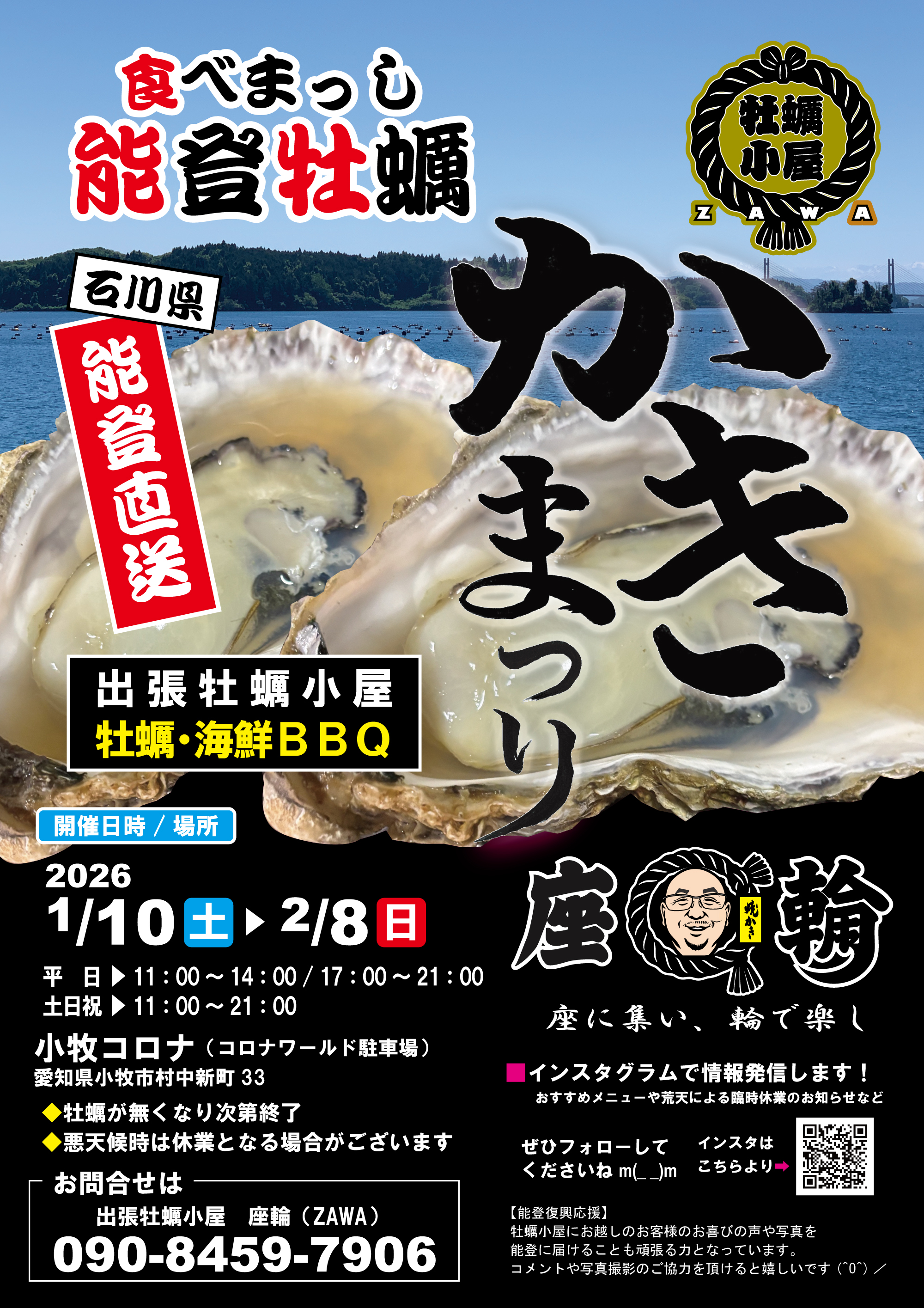 【2026/1/10~2/8】期間限定「牡蠣小屋開催」(小牧コロナワールド駐車場)