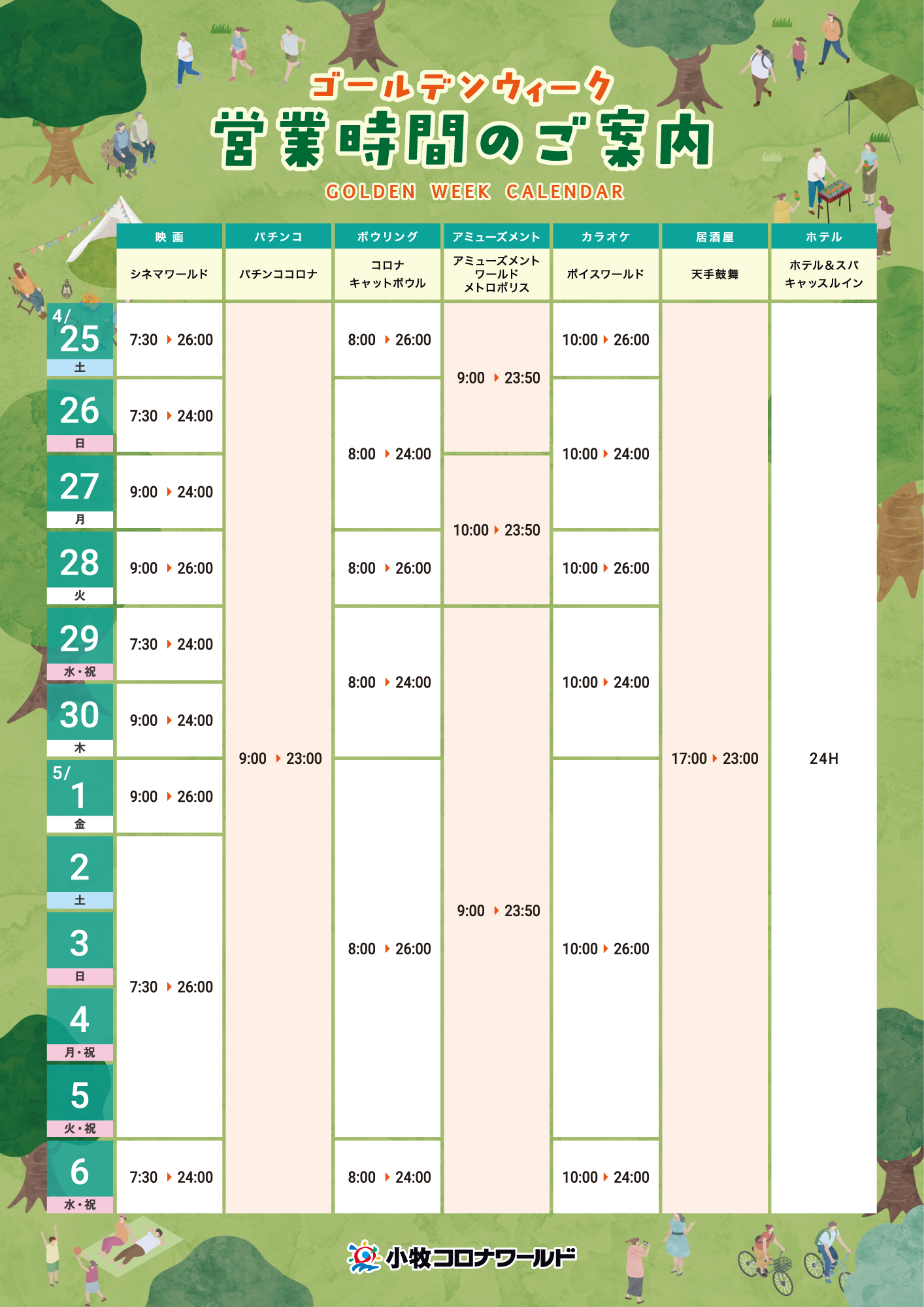 ゴールデンウイーク 営業時間のお知らせ 【小牧コロナワールド】