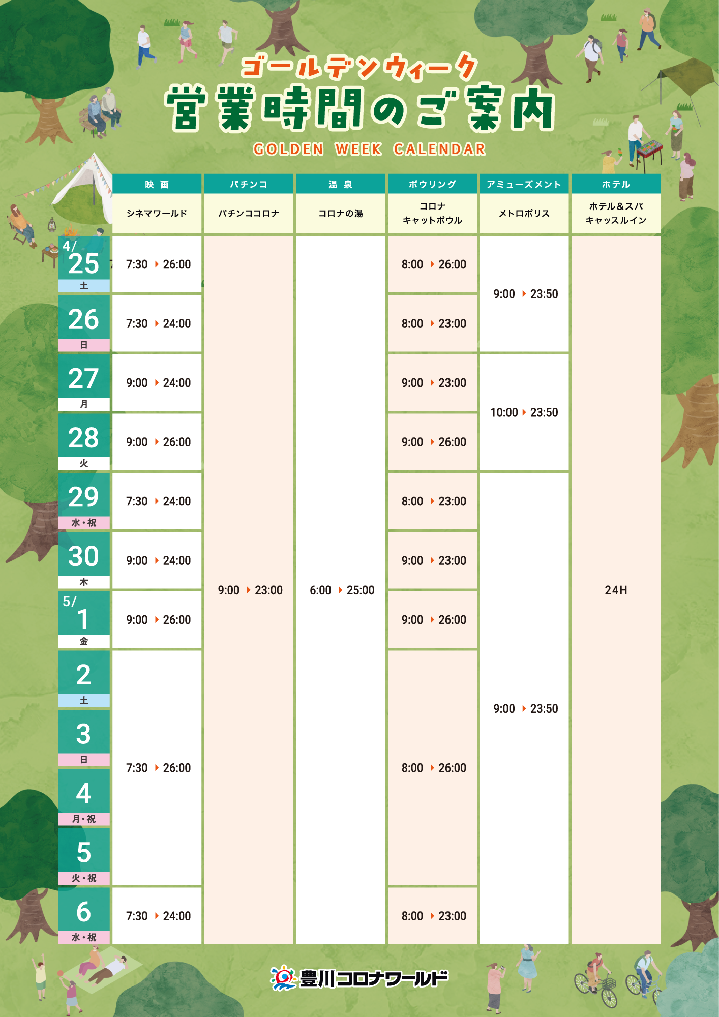 ゴールデンウイーク 営業時間のお知らせ 【豊川コロナワールド】