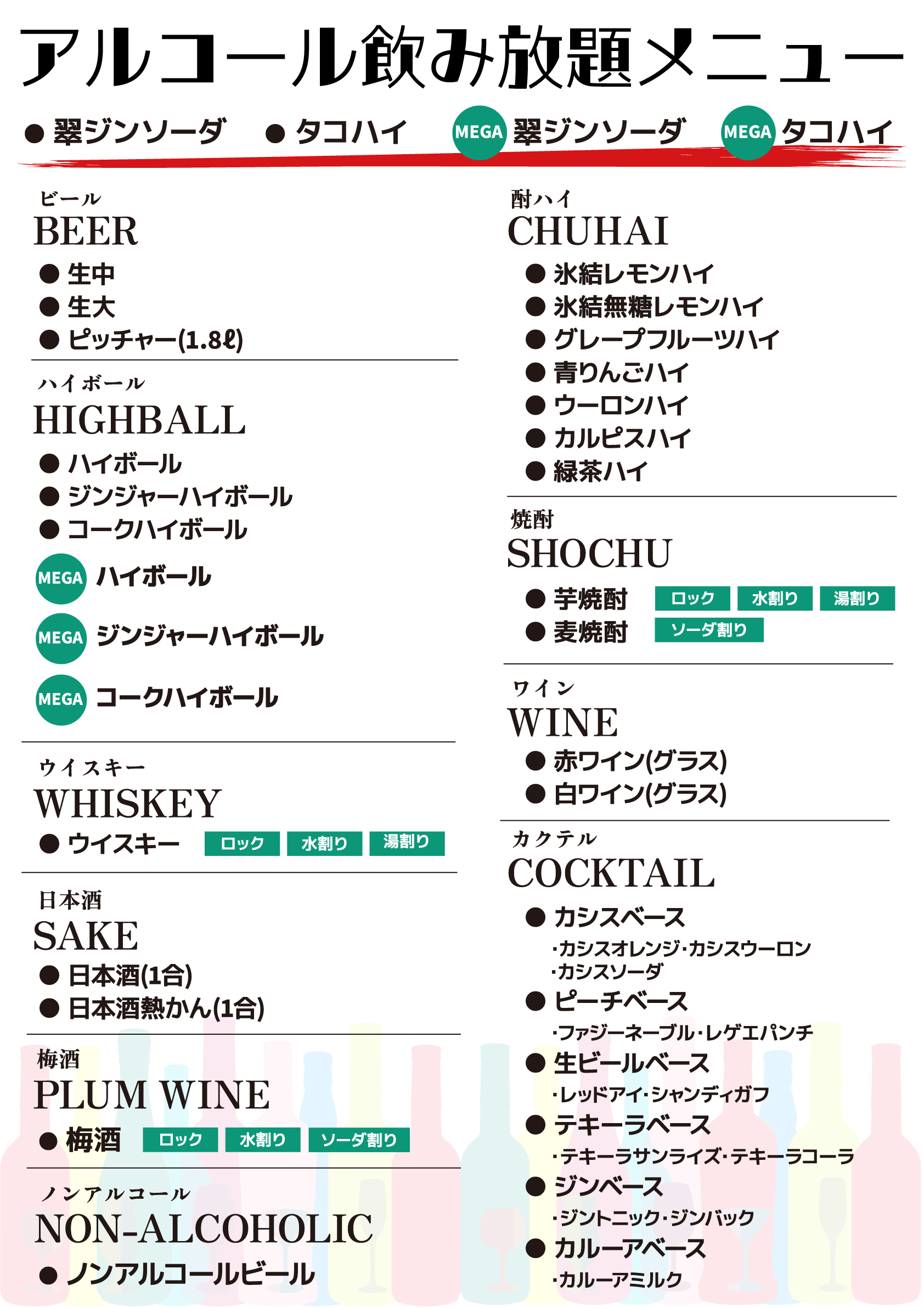 アルコール飲み放題♪
