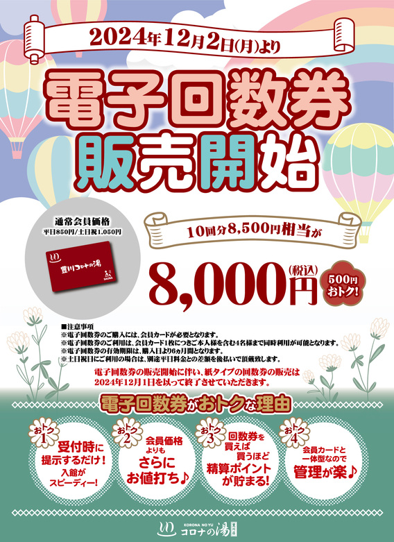 コロナの湯豊川店 電子回数券販売中