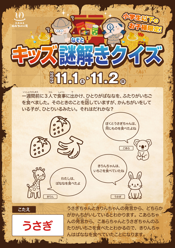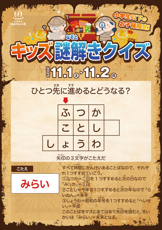 仙台コロナの湯「キッズ謎解きクイズ」答え