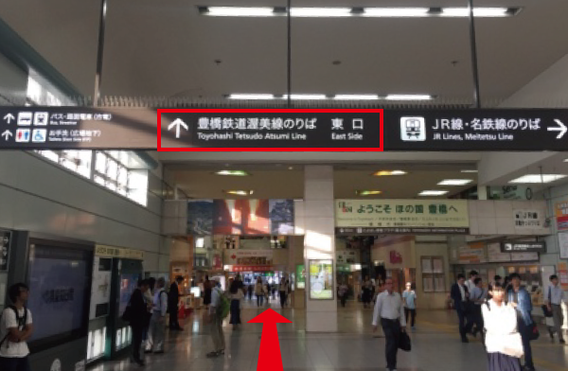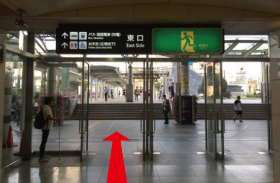 改札を出たら東口へお進みください。