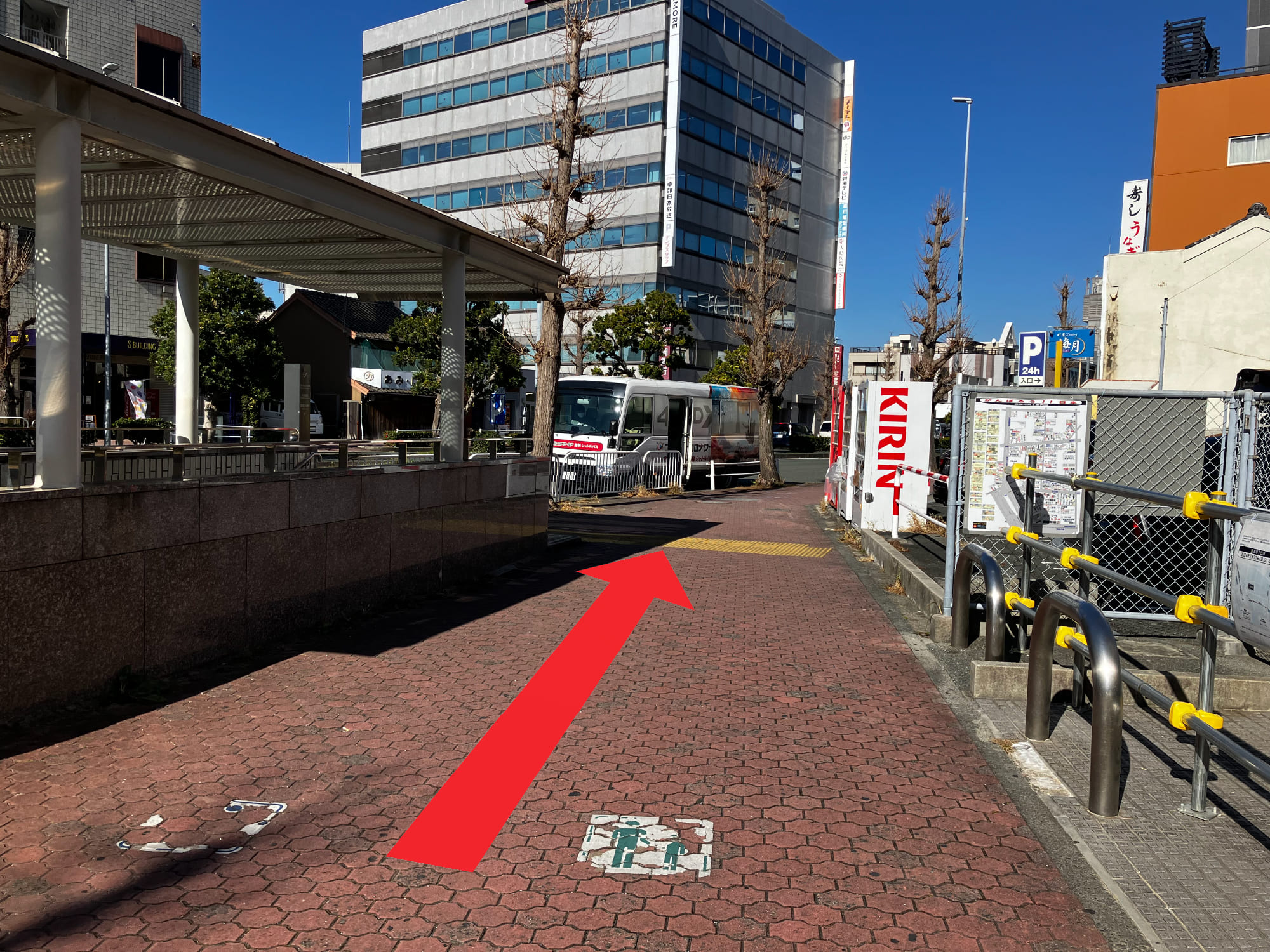 ⑨地下連絡通路の入口付近に停車します。