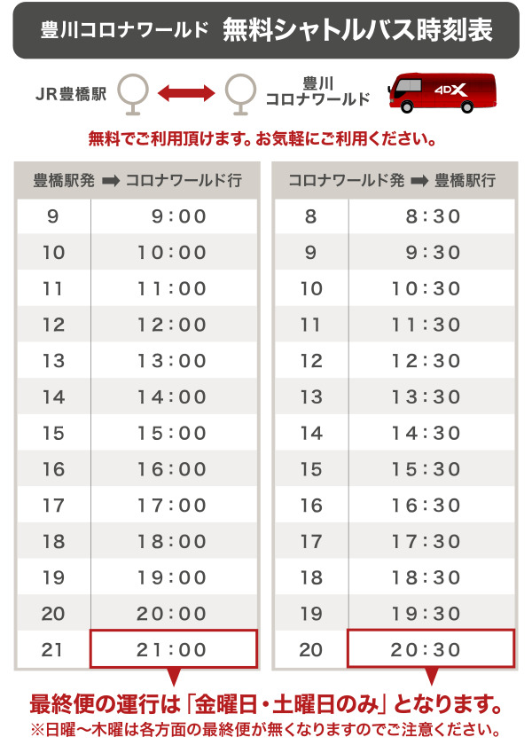 ■無料シャトルバスは豊川コロナワールドをご利用のお客様専用バスです。