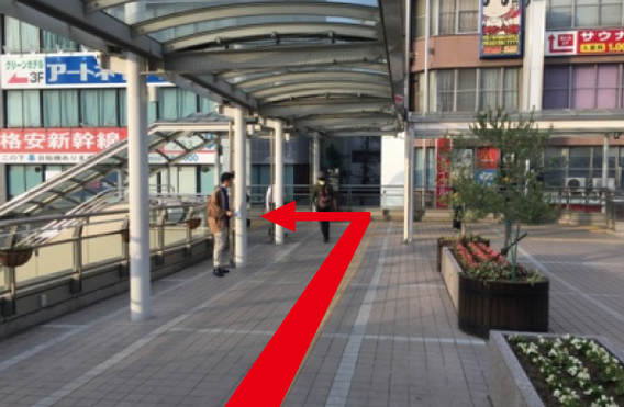 東口 2Fから歩道橋を渡り真っすぐ歩いて下さい。