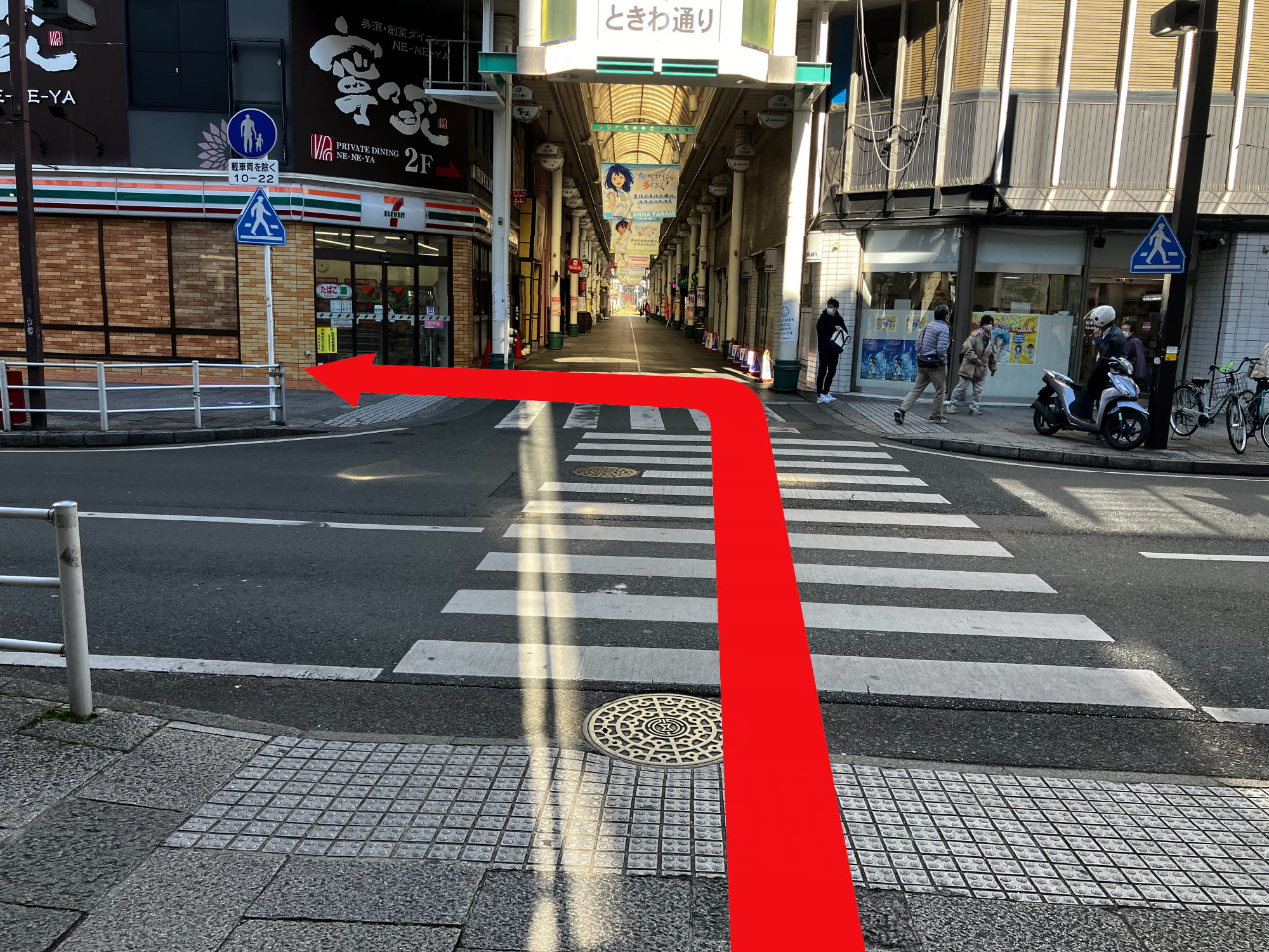 ⑤最初の横断歩道を渡ります。