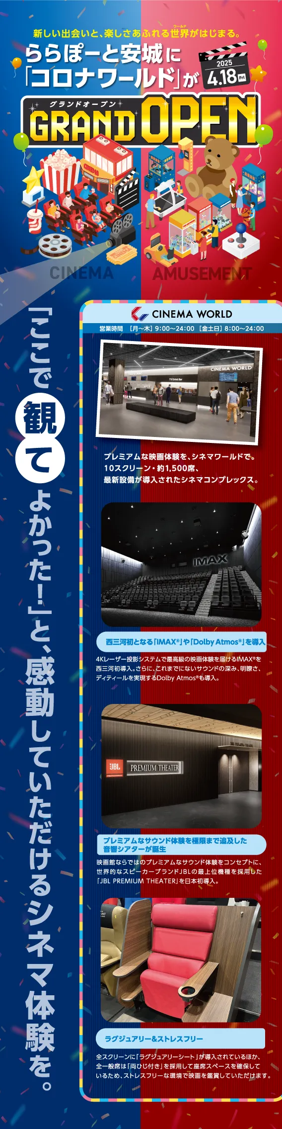 コロナワールド「ららぽーと安城店」GRAND OPEN